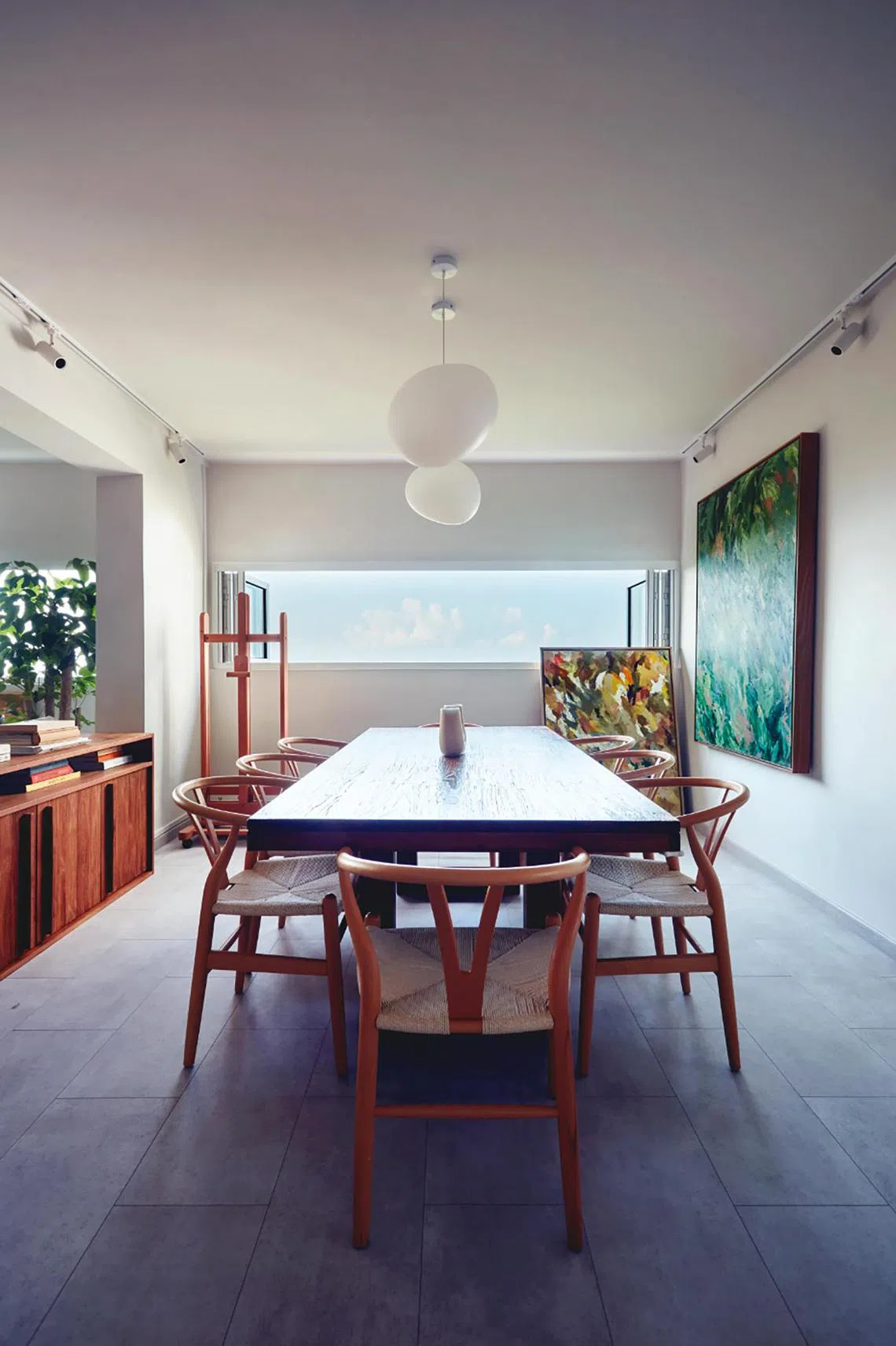 Located on a high floor, the open-concept living and dining rooms look out to a calming vista of the neighbouring East Coast Park. It is a view that far surpasses that from many other units which the artist and her husband saw in the search for their new home.