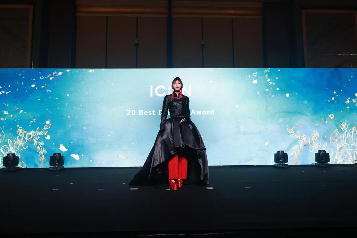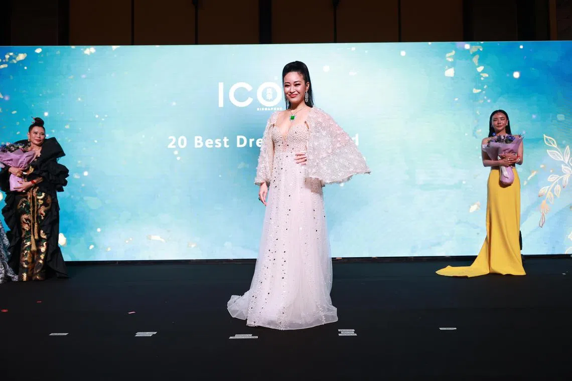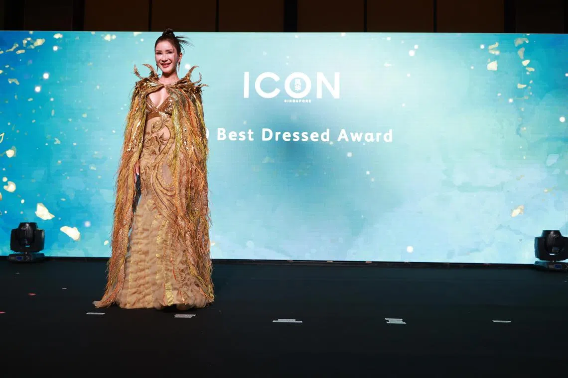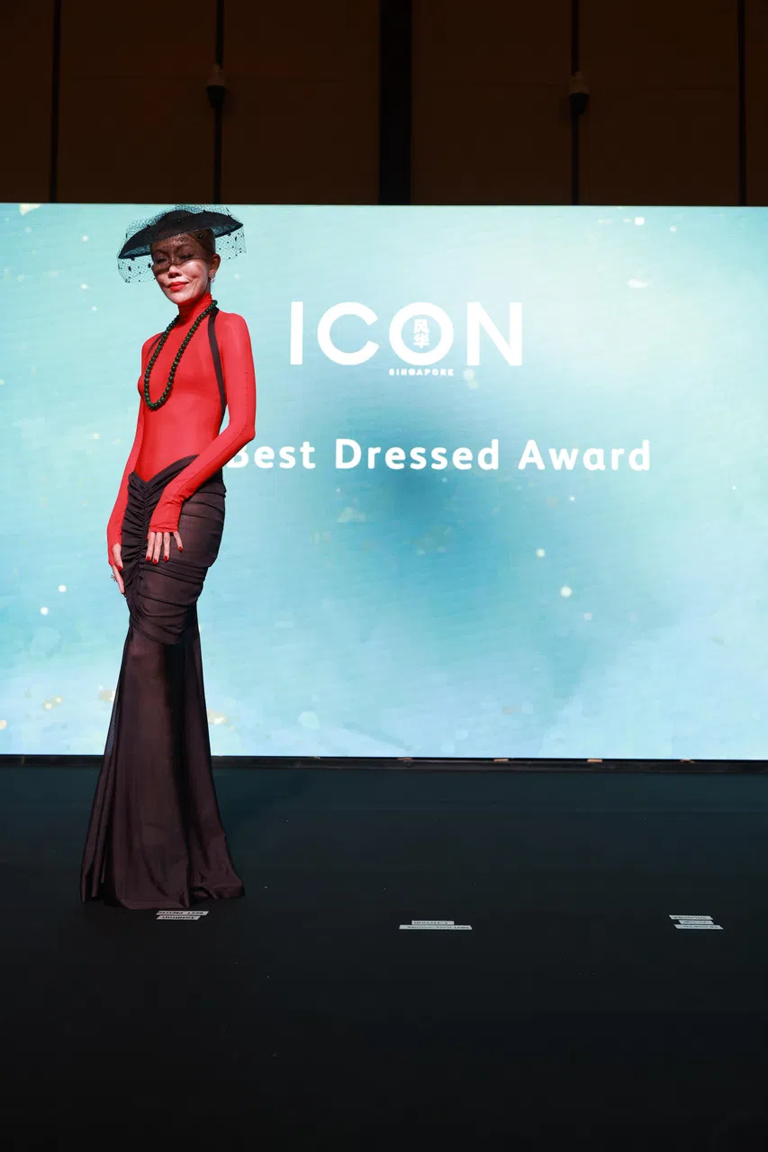 Several Icon guests, including a Barbie doll which was the plus-one of Mr Jian Yang – one of the biggest Barbie doll collectors in the world – showed up in dresses by Chinese couturier Guo Pei. But it was eye specialist Ho Ching Lin’s number with gravity-defying ruffles that emerged triumphant that evening.