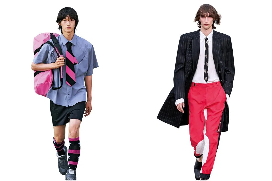 MSGM used the necktie to subvert the schoolboy look (left) while Dries Van Noten used it to explore masculinity and femininity.
