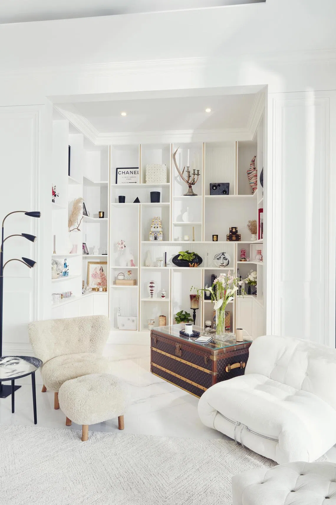 Stepping into her home is akin to entering a grand French salon. The almost entirely white three-storey residence takes up about 740 sq m of space.