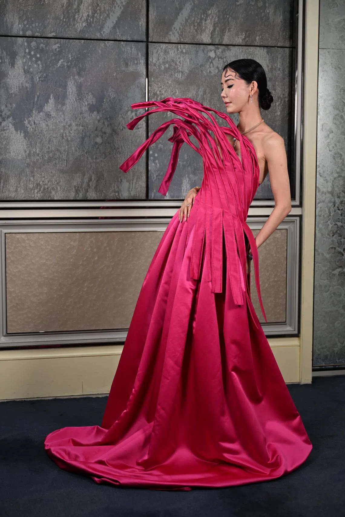 Ophthalmologist Ho Ching Lin in a “Barbiecore” gown by Frederick Lee Couture.