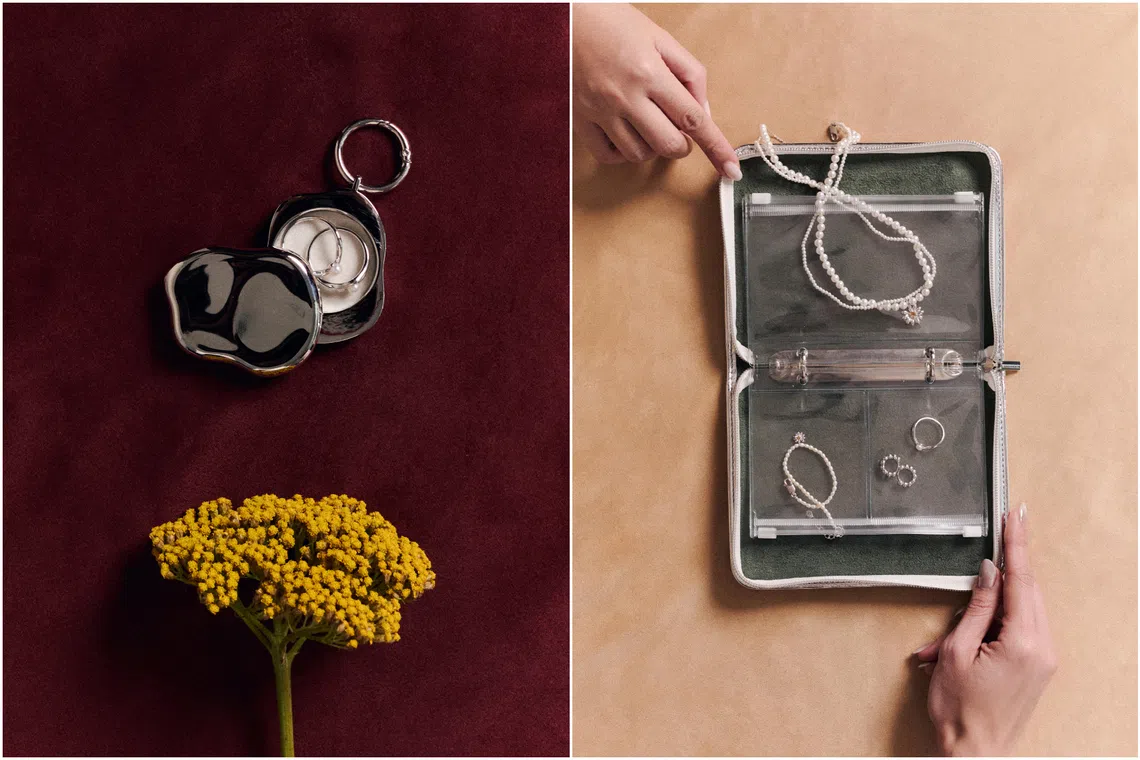 The functional yet decorated accessories include 001 The Nugget ($36), a sleek keepsake that houses your jewellery and doubles as a bag charm; 002 The Travelling Puff ($48); and 005 The Block Tray ($29 for the small) for sprucing up your home.