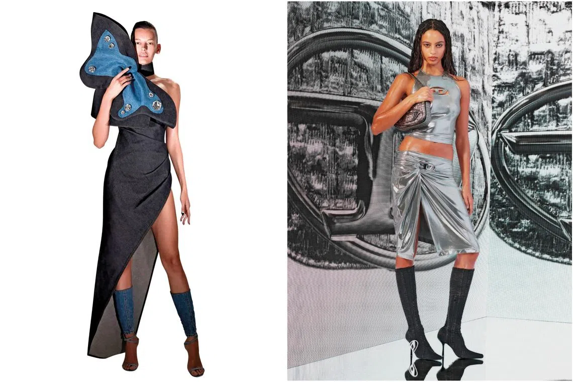 Diesel’s liquid metal pairing worn with sock-shoes definitely has Gen Z’s nod of approval. And Valentino’s intricately embellished knit skirt with three bows is equal parts sweet and sexy.
