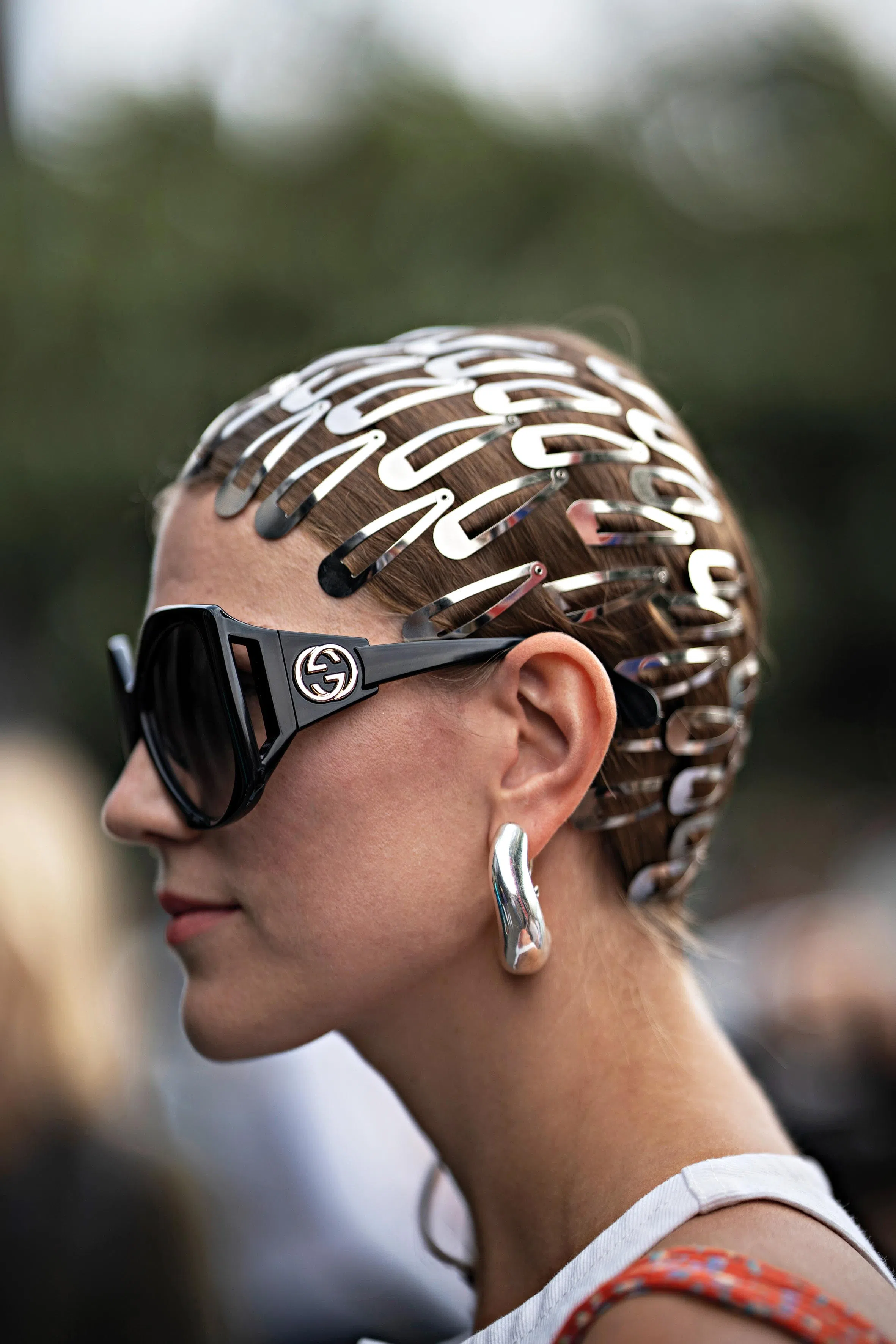 The key is to look intentional, so wear the hair clips in multiples.