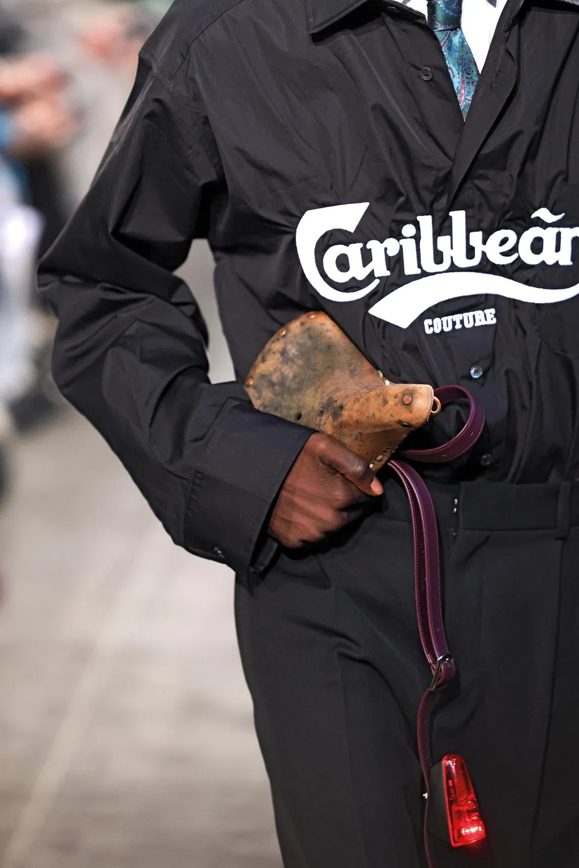 At Botter, the Netherlands-founded, Paris-based cult brand by designers Lisi Herrebrugh and Rushemy Botter, a Carlsberg beer logo gets reworked to read “Caribbean Couture” and immediately sets the tone for the designs to come.