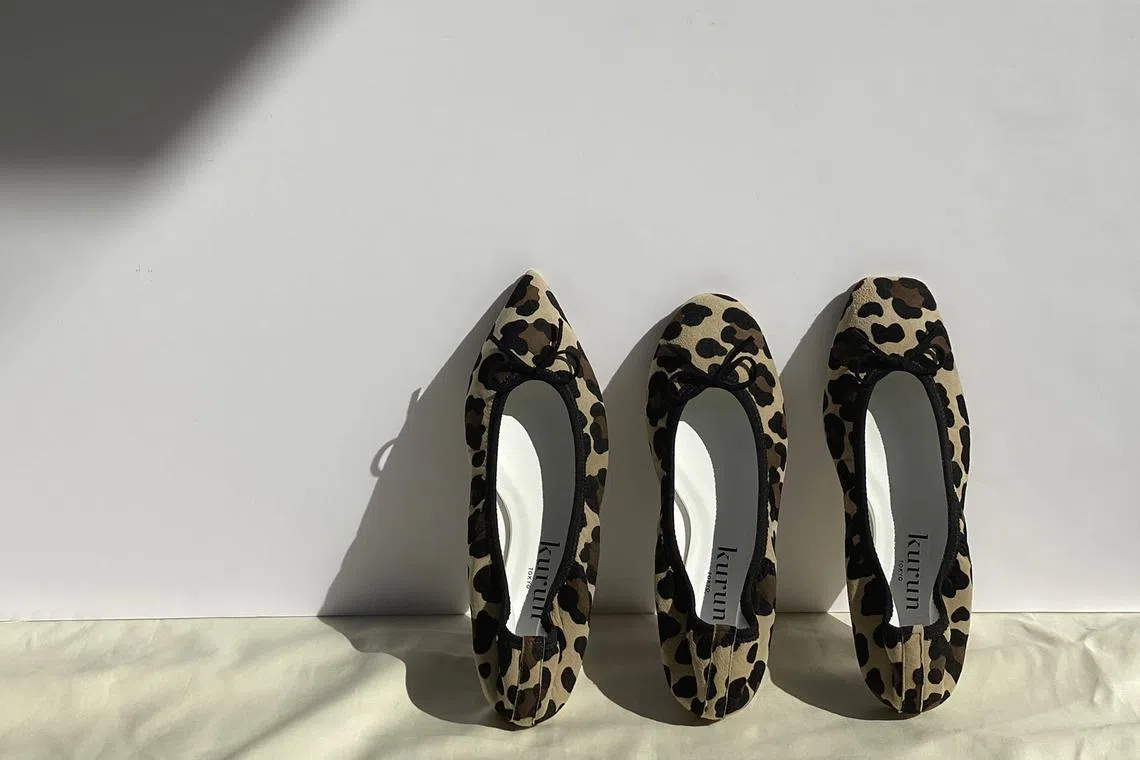 Until Sunday, shop the new water-repellent leopard-print flat ($290) made of ultrasoft sheep leather; and the foil crack mirror flat ($270) made of goat leather, which is launching in Singapore before its 2024 release in Japan.