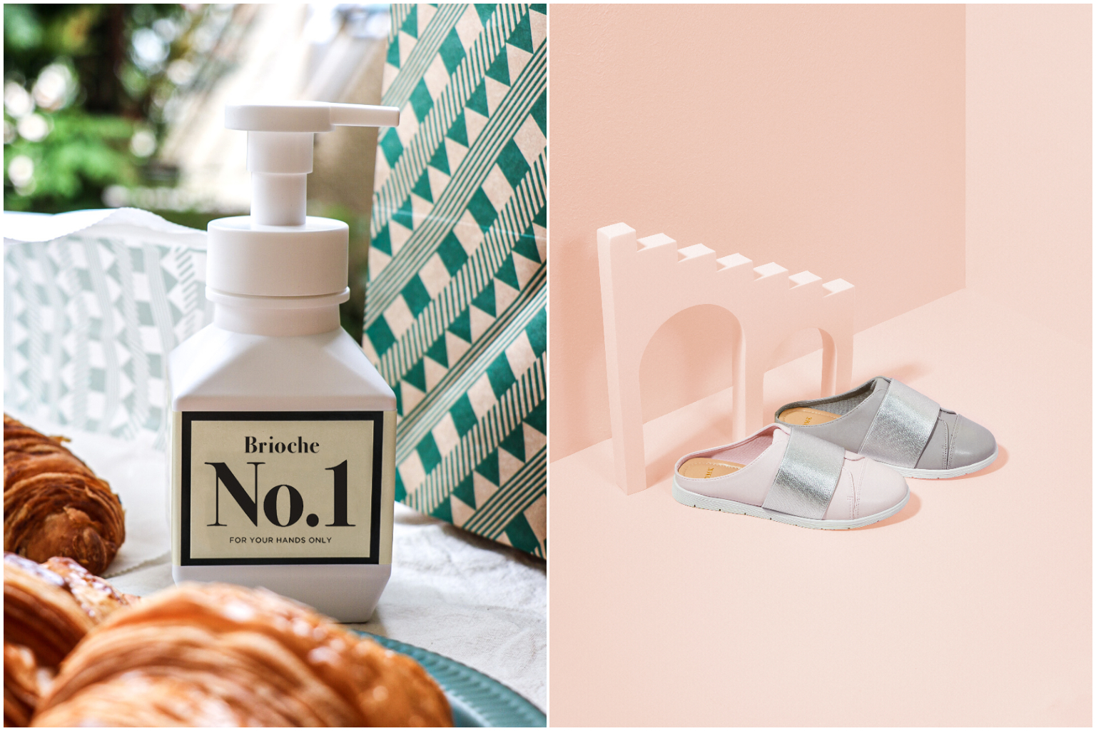 Tiong Bahru Bakery's hand wash (left) and DMK's shoe collection for International Women's Day.