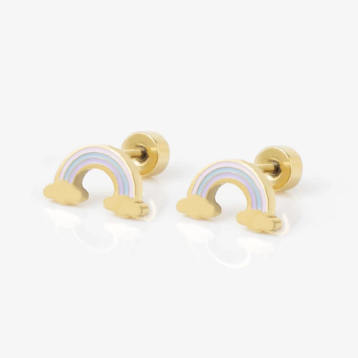 Wanderlust + Co Kids Rainbow Enamel Gold Flat Back Earrings.