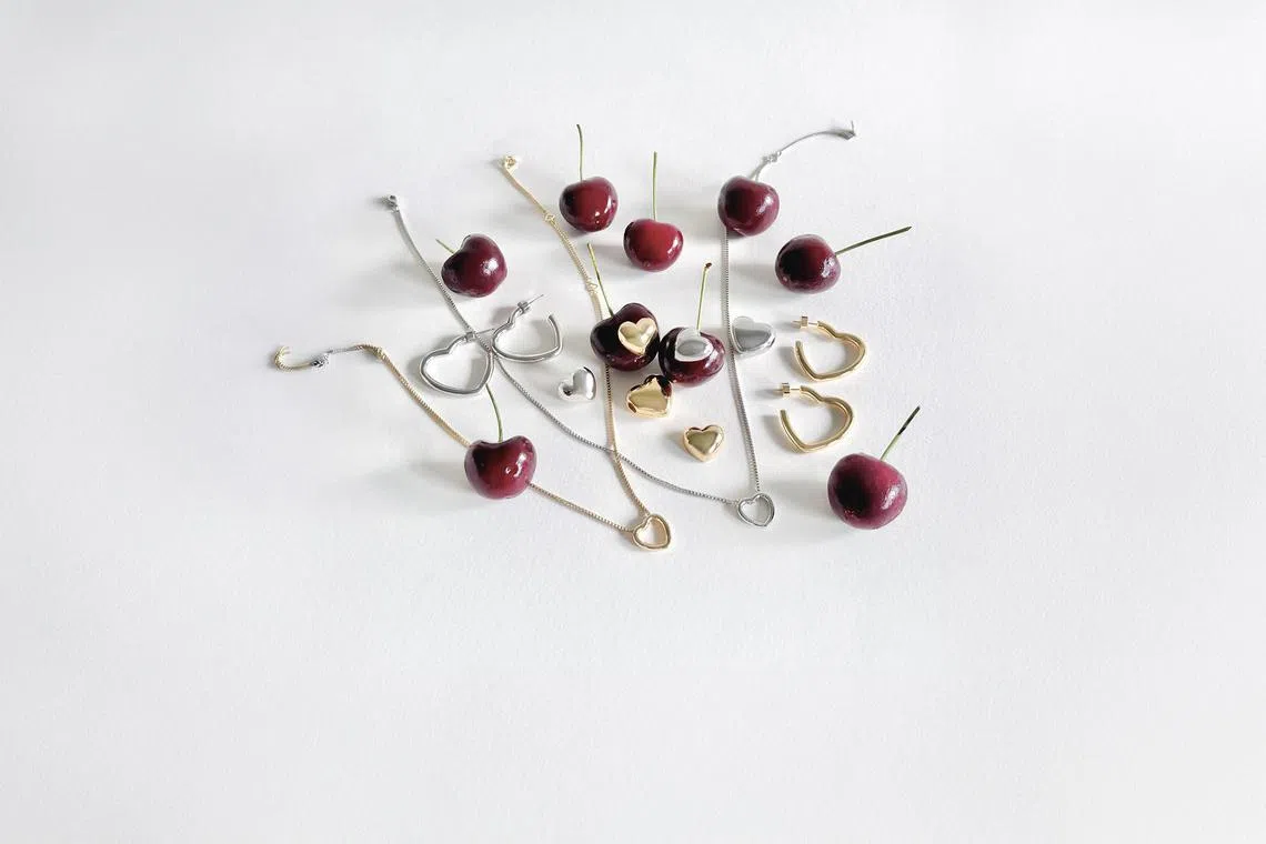 Get creative layering with the Hailey Heart Necklace ($75) and Alaia Bubble Heart Locket Necklace ($102), or elevate your ear candy game with the Hailey Heart Hoop Earrings ($80) and Bubble Heart Stud Earrings ($80). All the pieces are available in silver and gold-plated variations.