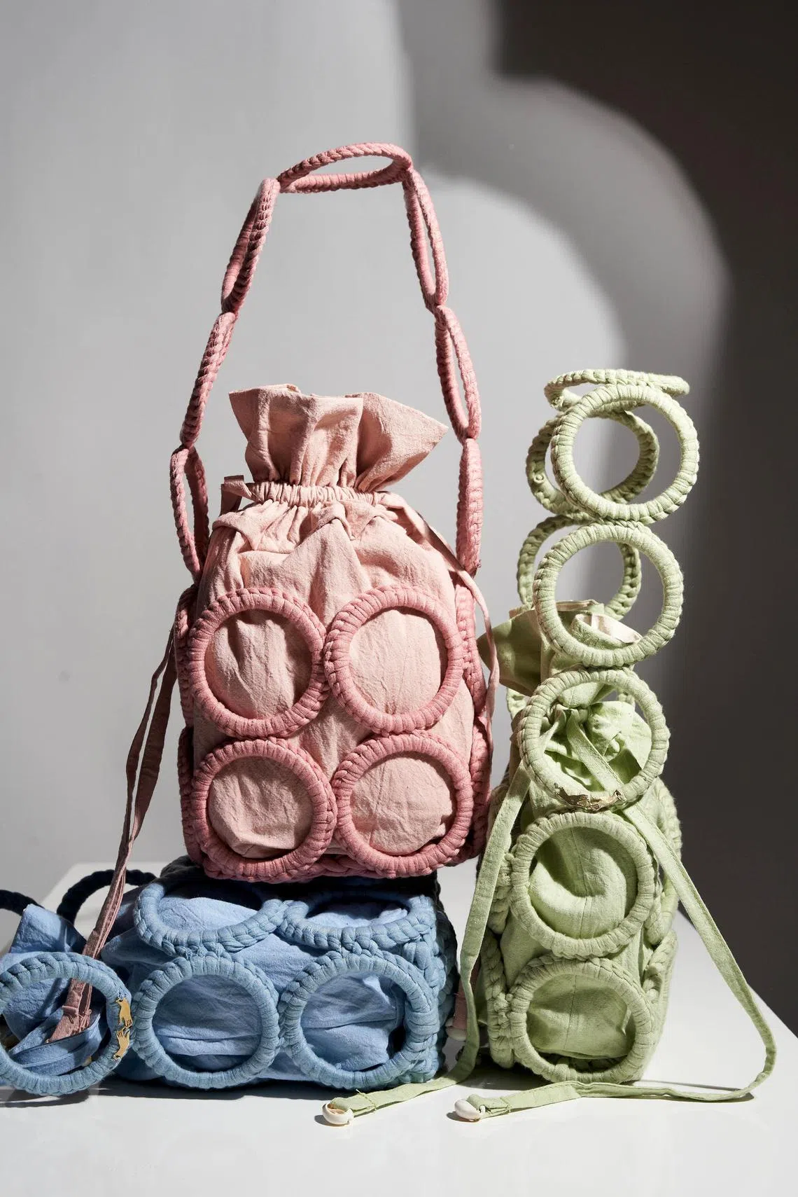 Spruce up your coffee rituals with the range of tableware in colours inspired by kuehs and coffee break snacks, and featuring Tanchen Studio’s signature weaving.