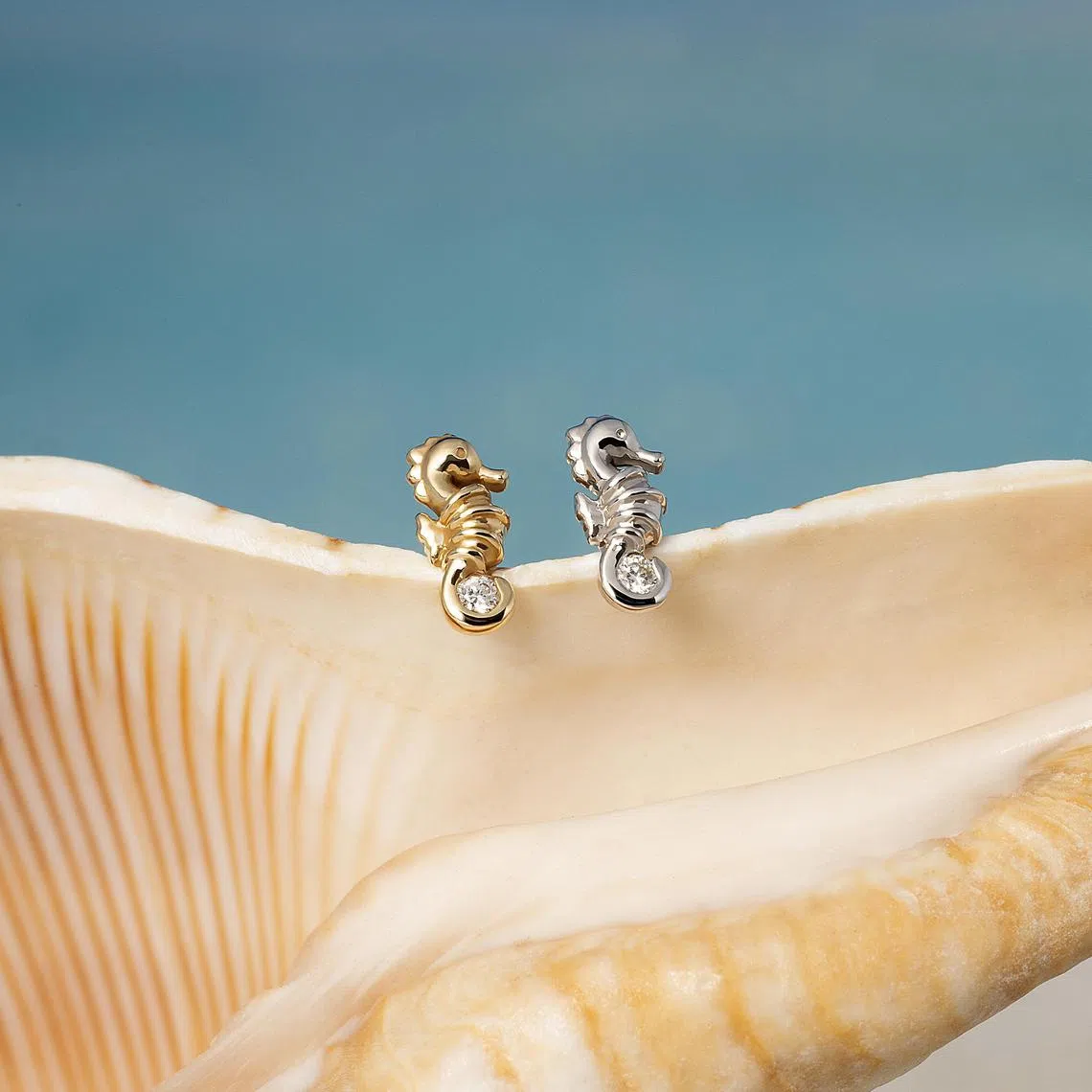 J&Co’s 14K Solid Gold Seahorse Diamond Flatback Earring (Yellow & White Gold).