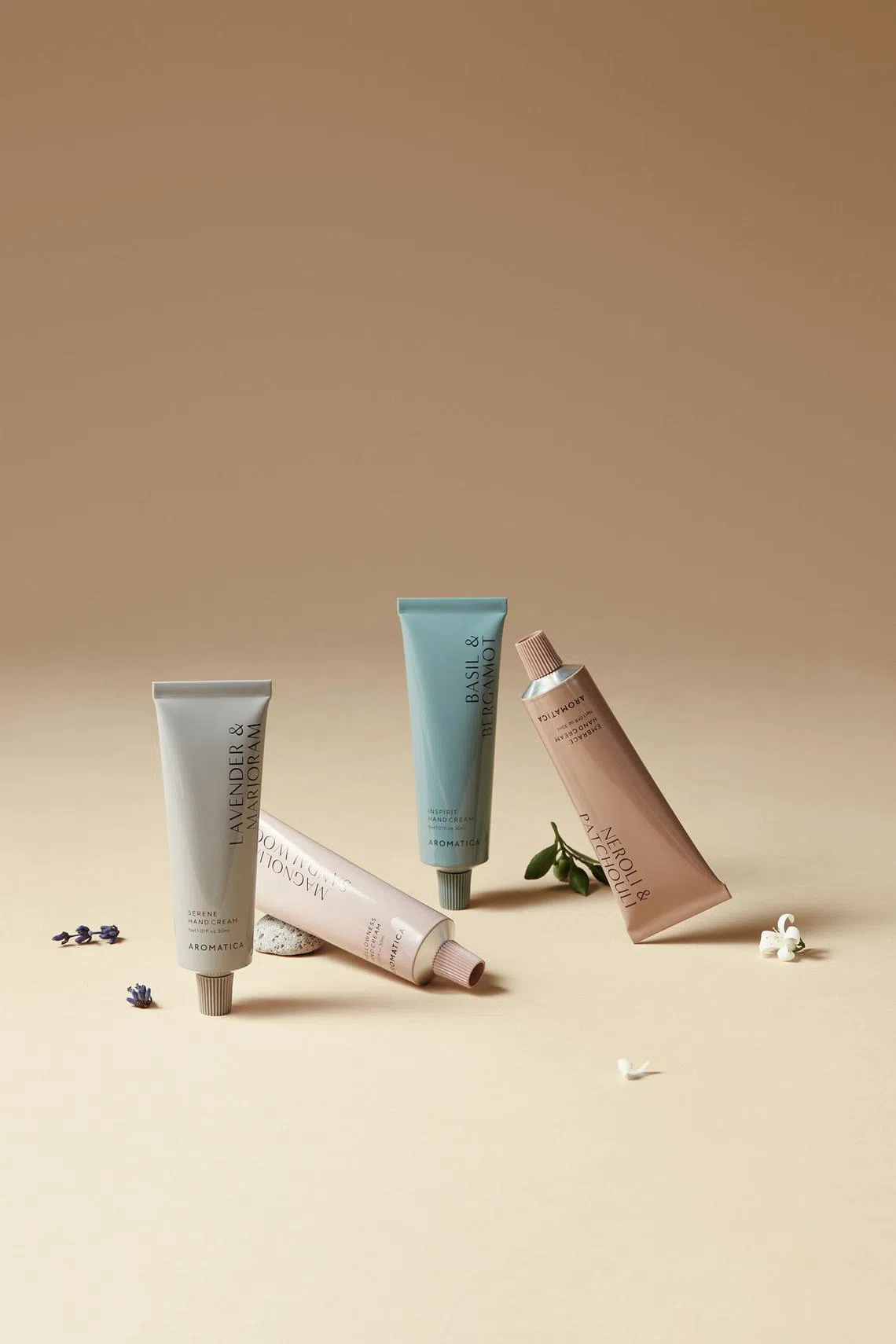 Aromatica’s new hand cream collection comes in four soothing scents.