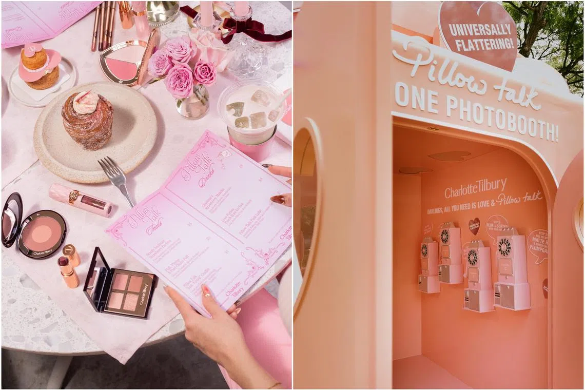 Charlotte Tilbury Pillow Talk Cafe (left) and Charlotte Tilbury Pillow Talk Love Playground Pop-Up – Pillow Talk Kissing Booth.