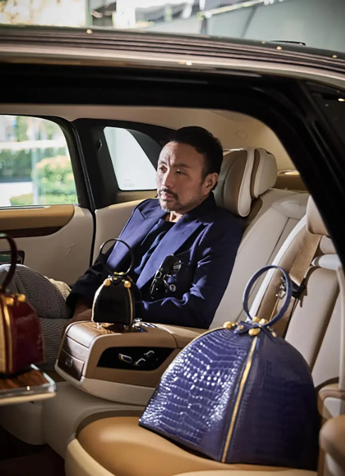 Designer Ethan Koh with the Duchess bag in the Rolls-Royce Phantom.