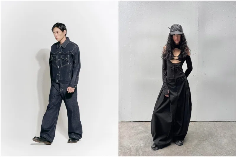 A full denim look from Vietnamese label Sidesofus (left) and big and swaggy pants by Vietnamese label Saggitarius A+.