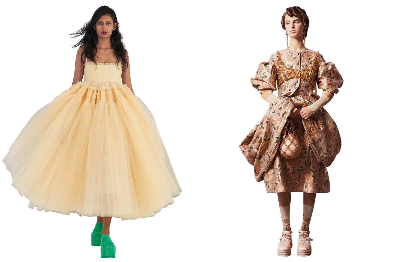(From left) Style creations from Molly Goddard and Simone Rocha.