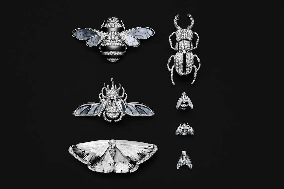 Insects feature prominently, with the Mouche and Coccinelle brooches showcasing the maison’s attention to lifelike detail, with veined wings engraved with ultra-fine laser.