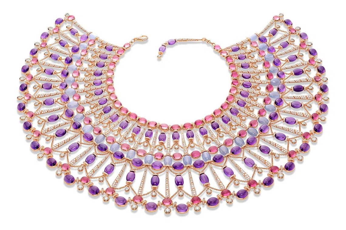 5. The Bvlgari Poncho Necklace in pink gold blends diamonds with colourful stones like amethysts, tourmalines and chalcedony beads.