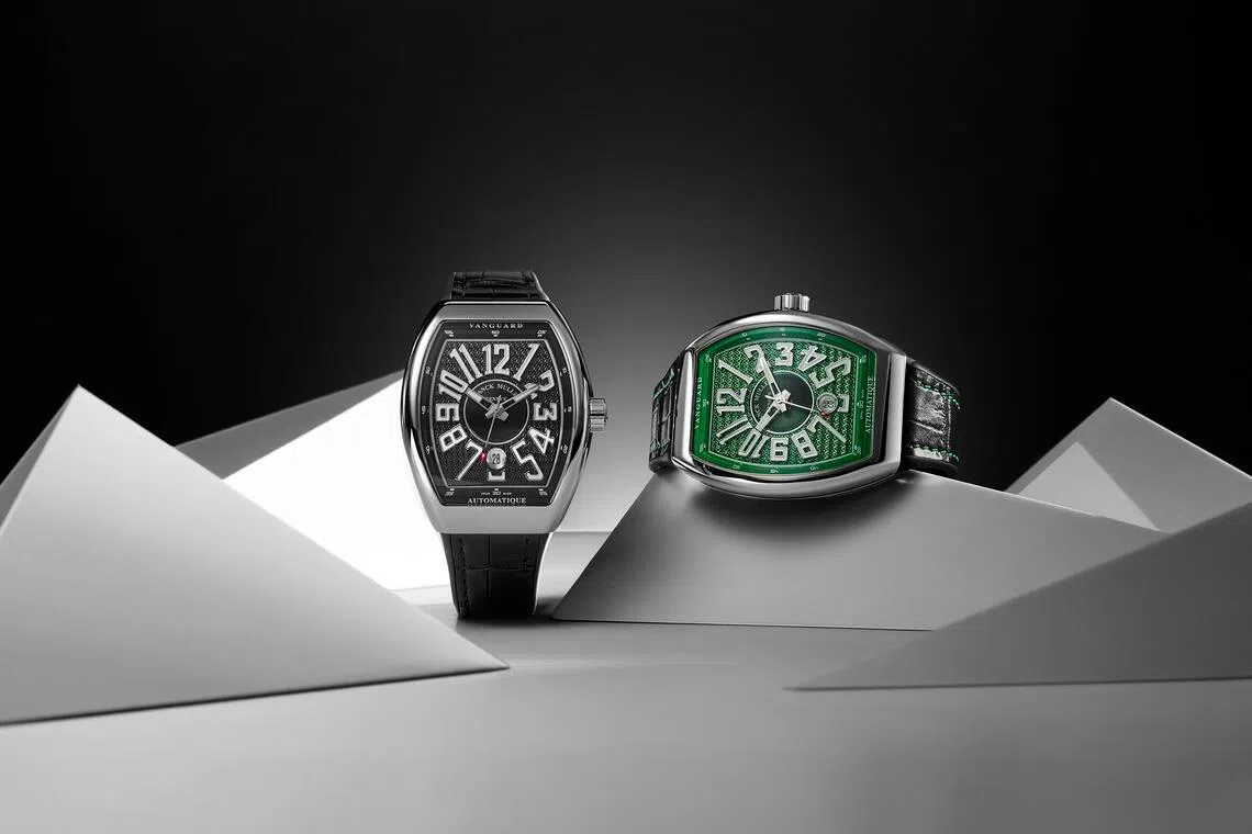 Franck Muller’s latest V 43 stainless-steel model retains the signature tonneau curves of the iconic Cintree Curvex case while introducing a guilloche pave de losanges dial which plays with light and reflection.