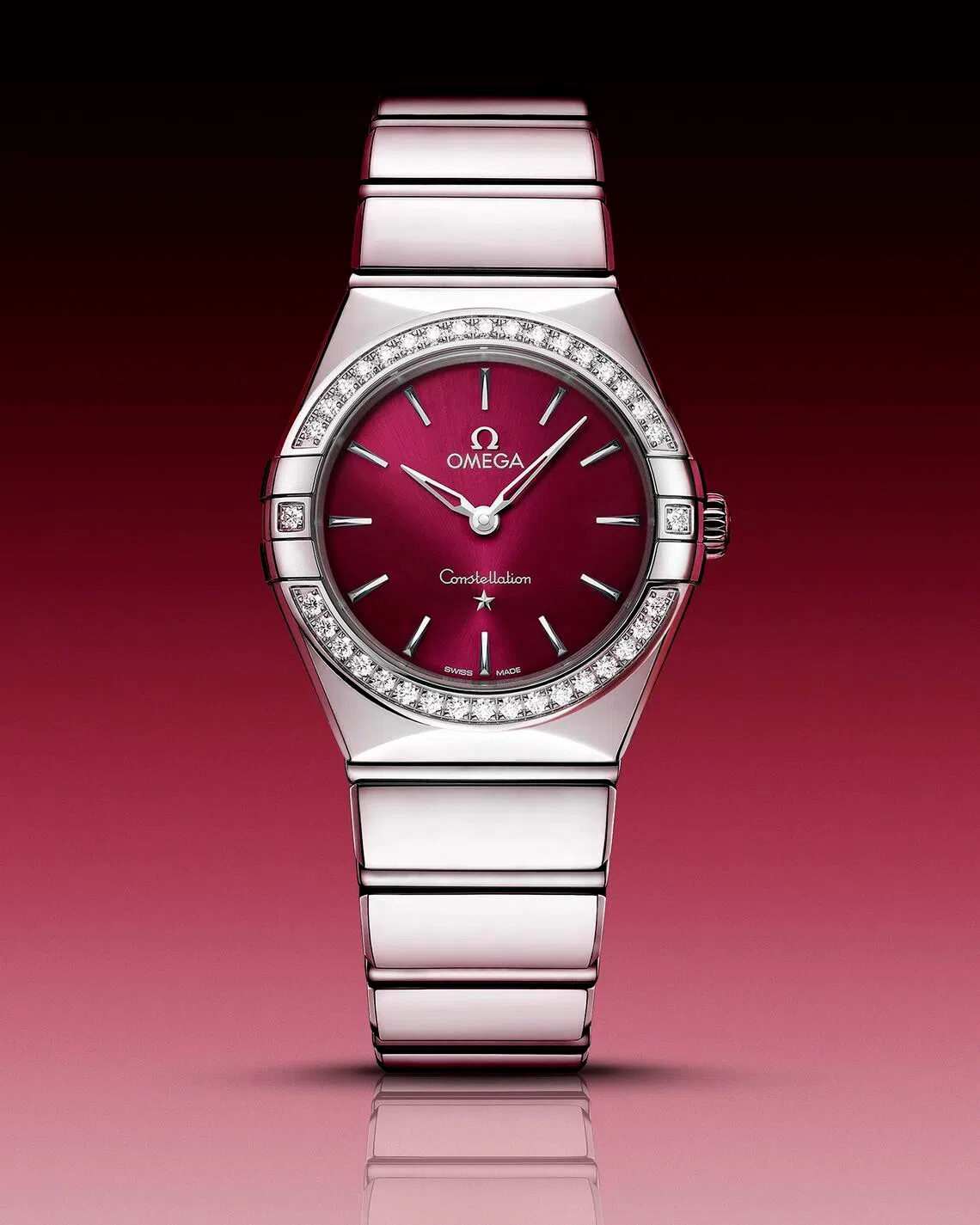 Omega’s new Constellation pieces bear the brand’s signature Geneva Observatory eight-star medallion.