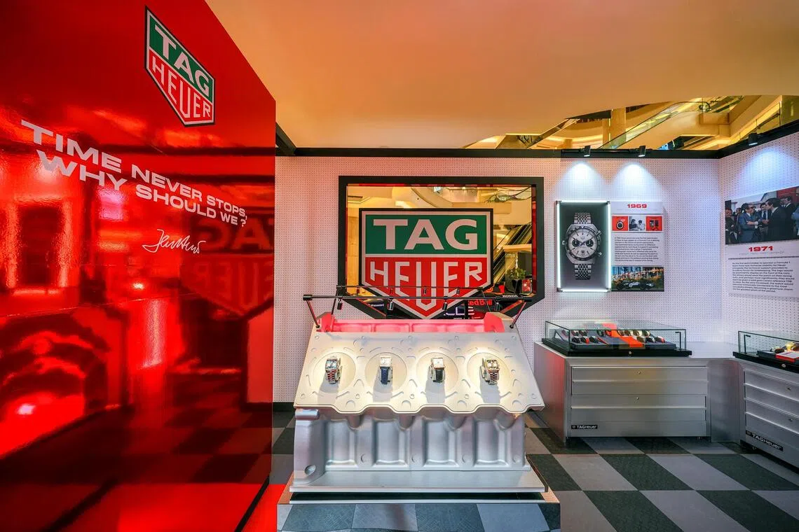 Legendary watches worn by racing icons like Jo Siffert, Michael Schumacher and Lewis Hamilton are on display at the Tag Heuer pop-up.