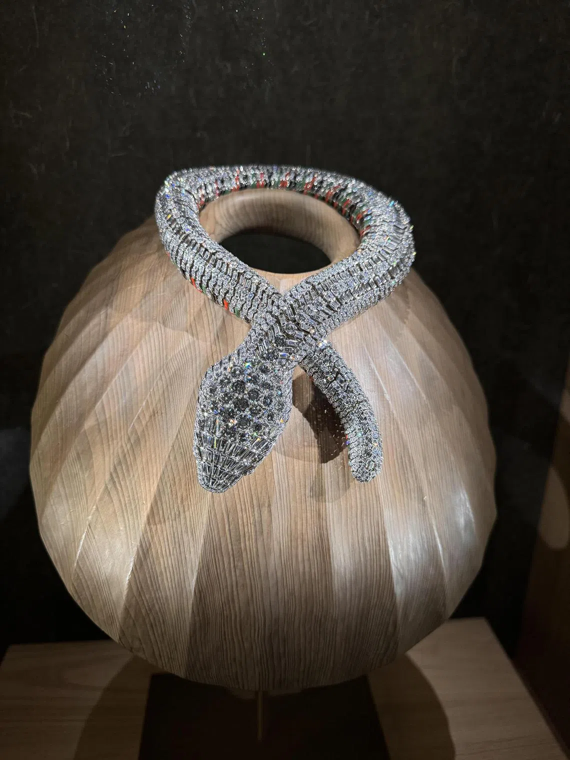 A 1968 snake necklace made from platinium, white gold, yellow gold, diamonds, emeralds and coloured enamel made for the late Mexican actress Maria Felix.