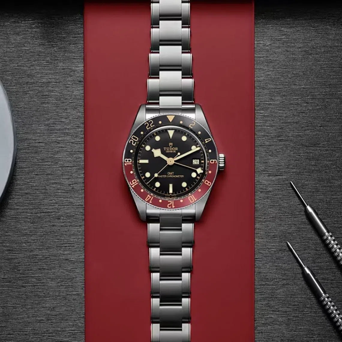 The Tudor Black Bay 58 GMT Featuring a bi-directional Coke bezel features and an advanced jumping local-hour GMT complication.