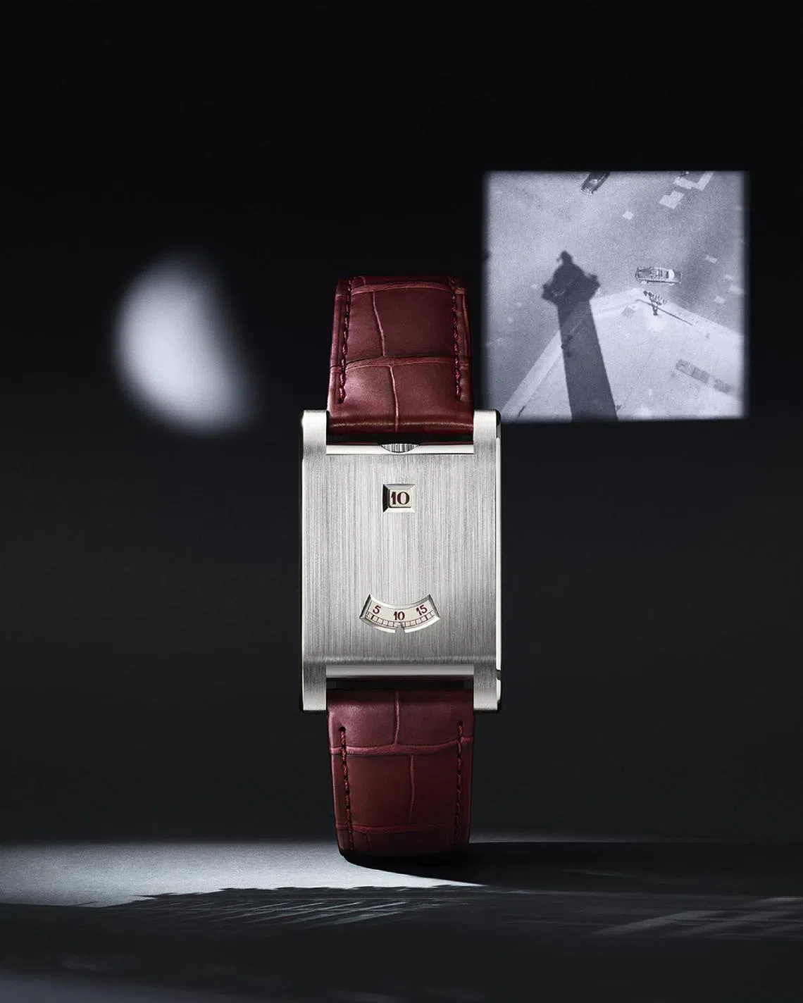 The new collection of Tank a Guichets is powered by the hand-wound calibre 9755 MC movement, known for its jumping hour and dragging minute function.