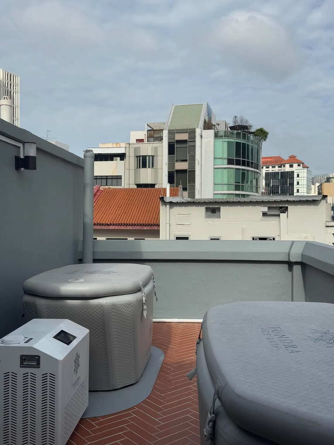 A rooftop terrace with two cold plunge tubs is among the recovery facilities at Solas Reformative in the Central Business District that opened in January 2025.