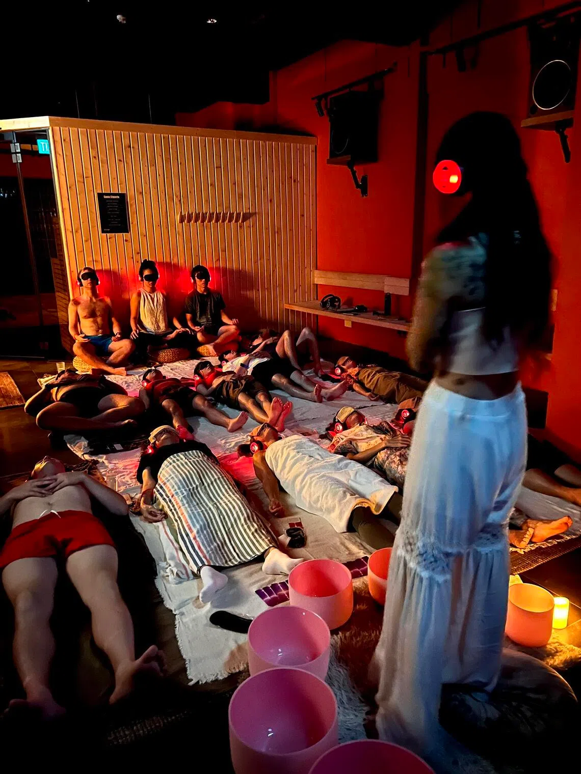 Plunge Club holds regular events for customers, including 9D Breathwork sessions, facilitator-led sessions that layer solfeggio tones (sound frequencies said to have healing effects), immersive soundscapes and somatic breathwork.