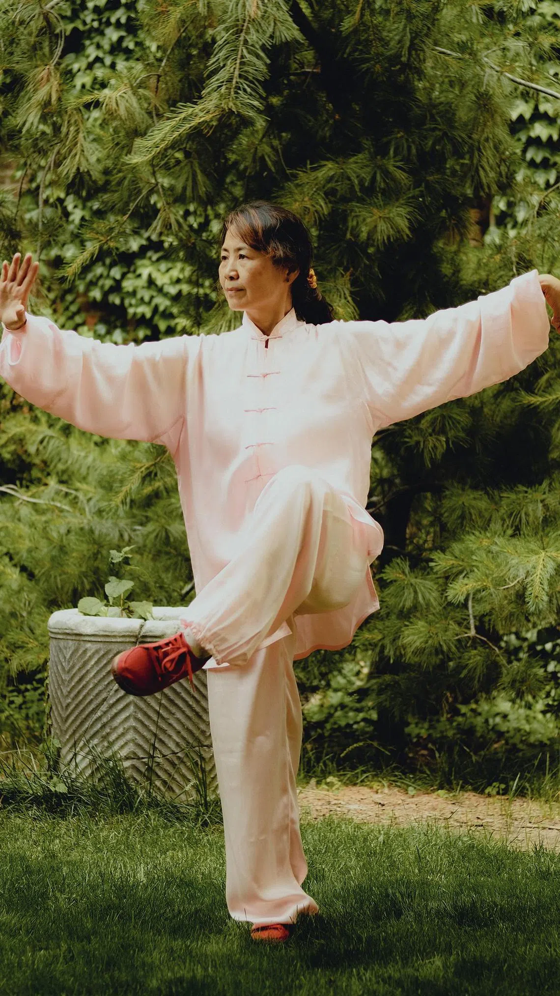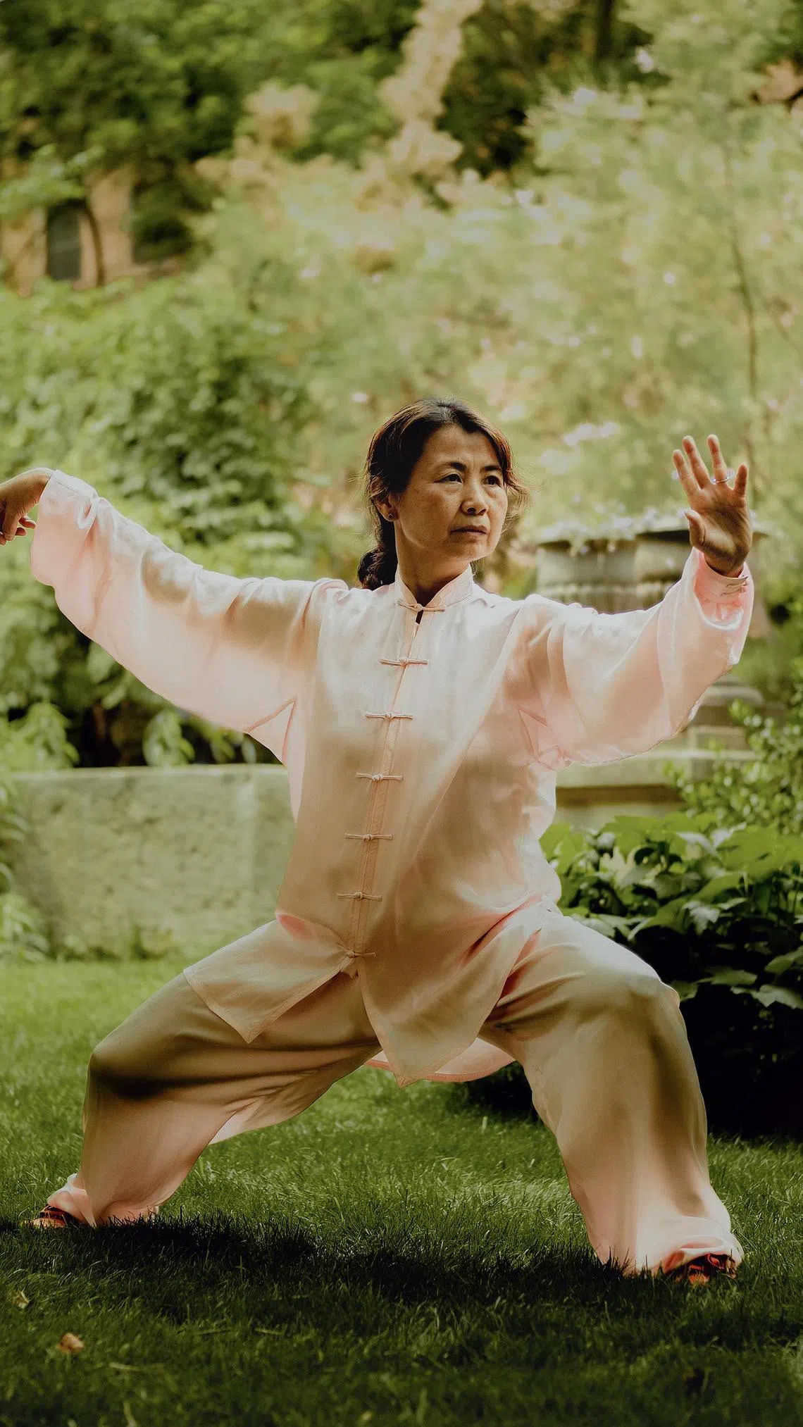 Ms Shirley Chock, 48, began practising in her 20s, after she tore her anterior cruciate ligament. She had trained in wushu gongfu, a more acrobatic martial art that caused the tear, but taiji offered a low-impact way to rehabilitate. Ms Chock, a former financial professional who was born in New York and spent her childhood in Taiwan, also found taiji beneficial in managing stress. After about two years, she began teaching it, and eventually took over Aiping Tai Chi, the Connecticut school where she had trained.