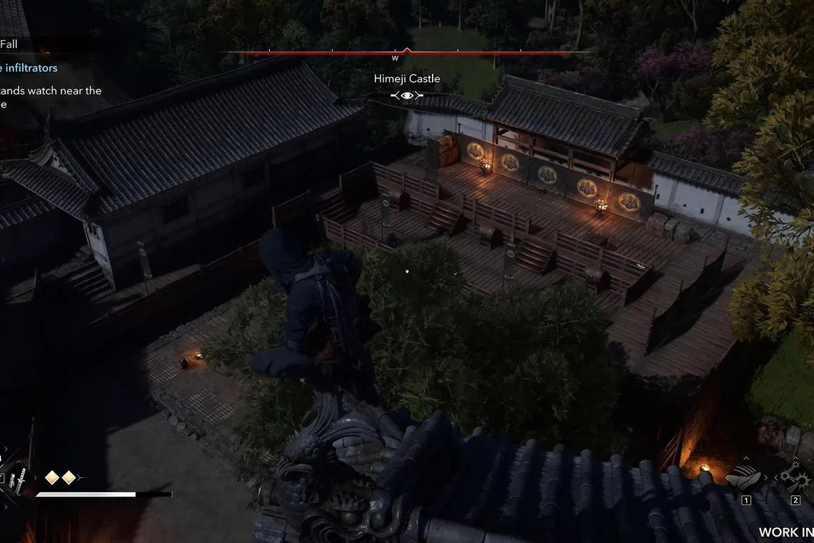 The game transforms Japanese architecture into a playground for creative traversal. Horizontal beams and slanted roofs that were characteristic of buildings of the time become pathways for entry and escape in castle settings based on real-world equivalents.