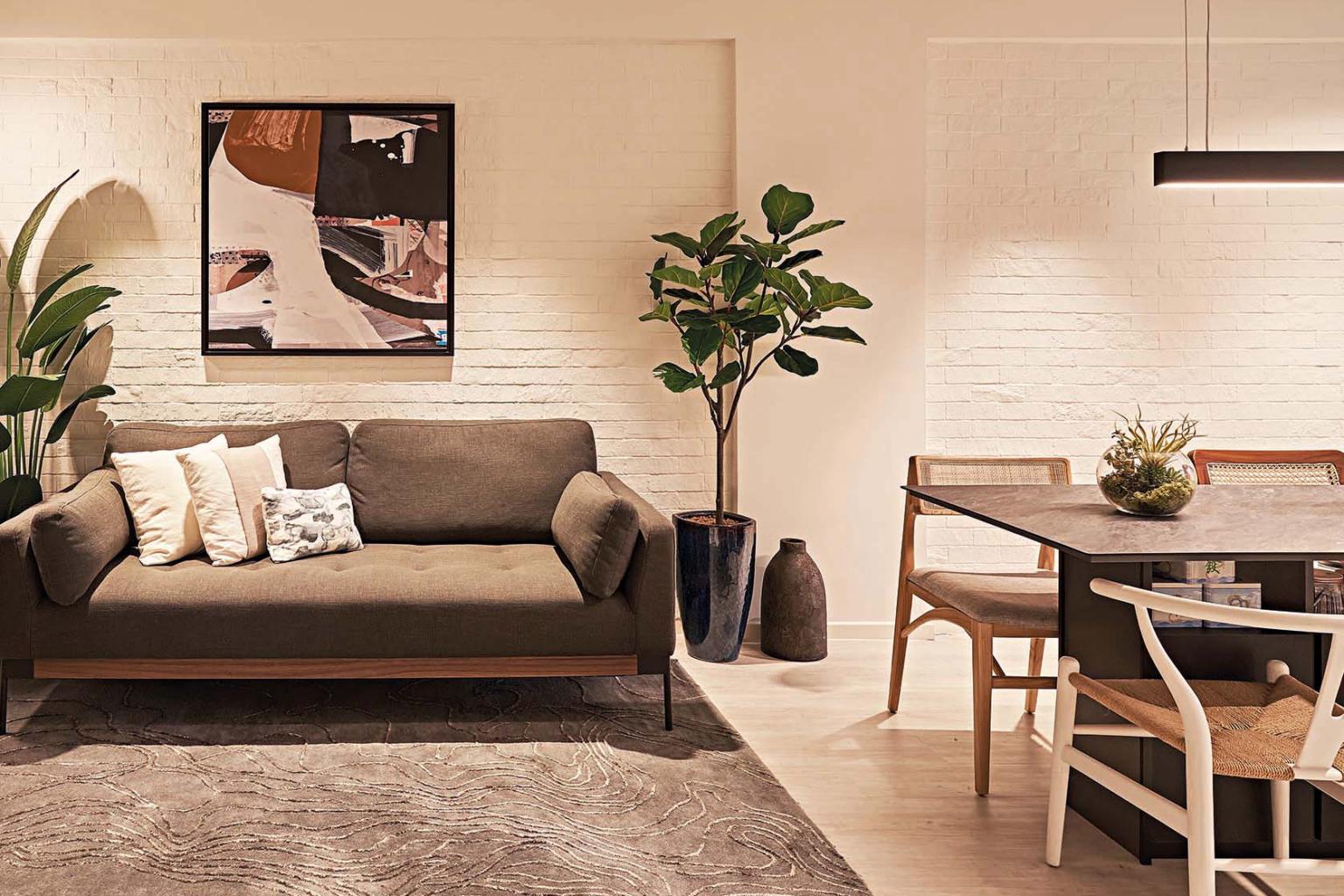 Clad mostly in warm neutrals and monochromatic shades, it feels much more spacious than its actual square footage suggests, thanks to clever design decisions by interior designer Shuwen See.