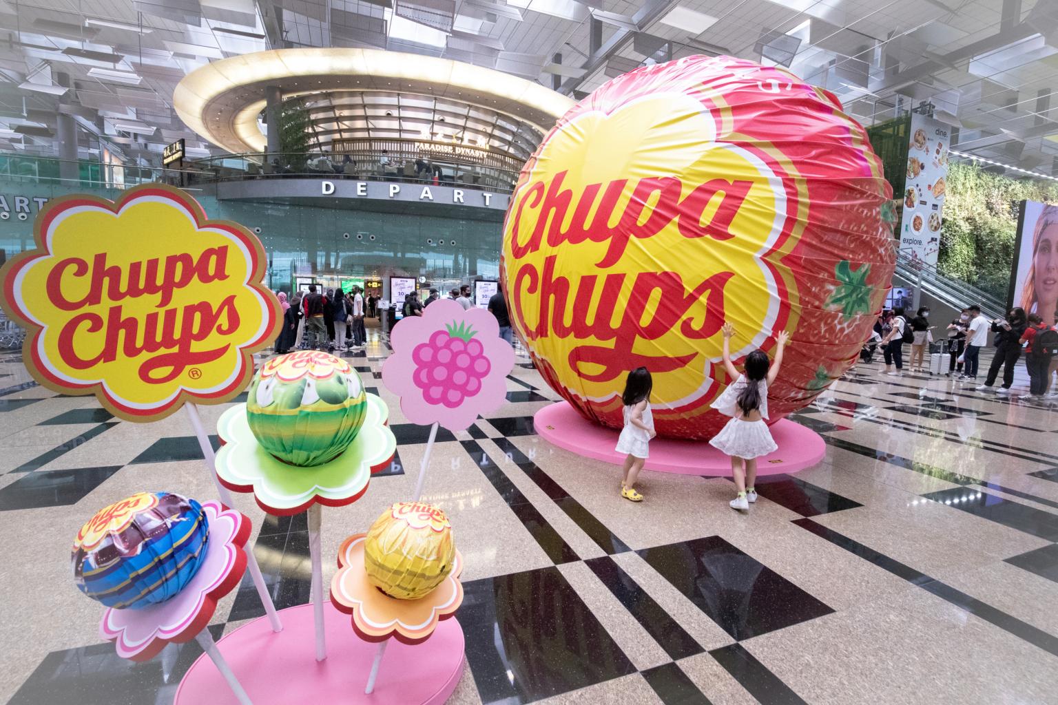 SINGAPORE - A sweet surprise awaits visitors in Changi Airport. From now till May 3, a giant Chupa Chups strawberry lollipop takes pride of place in the Terminal 3 departure hall.
