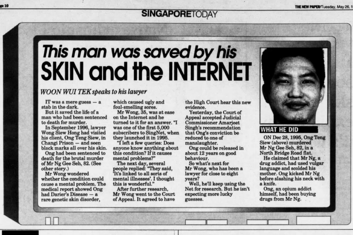 Back then, he was among the first subscribers to SingNet, one of Singapore’s early internet services. Trawling through online medical discussion groups, he found a connection between Darier’s disease and psychiatric disorders.