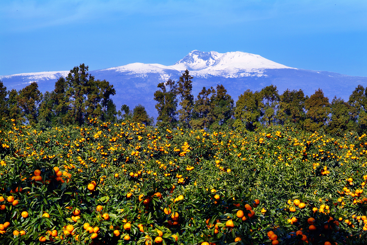 Set against the backdrop of snow-capped Mount Hallasan, Jeju’s famous Hallabong trees are just a snippet of South Korea’s winter charm. PHOTO: JEJU TOURISM ORGANIZATION