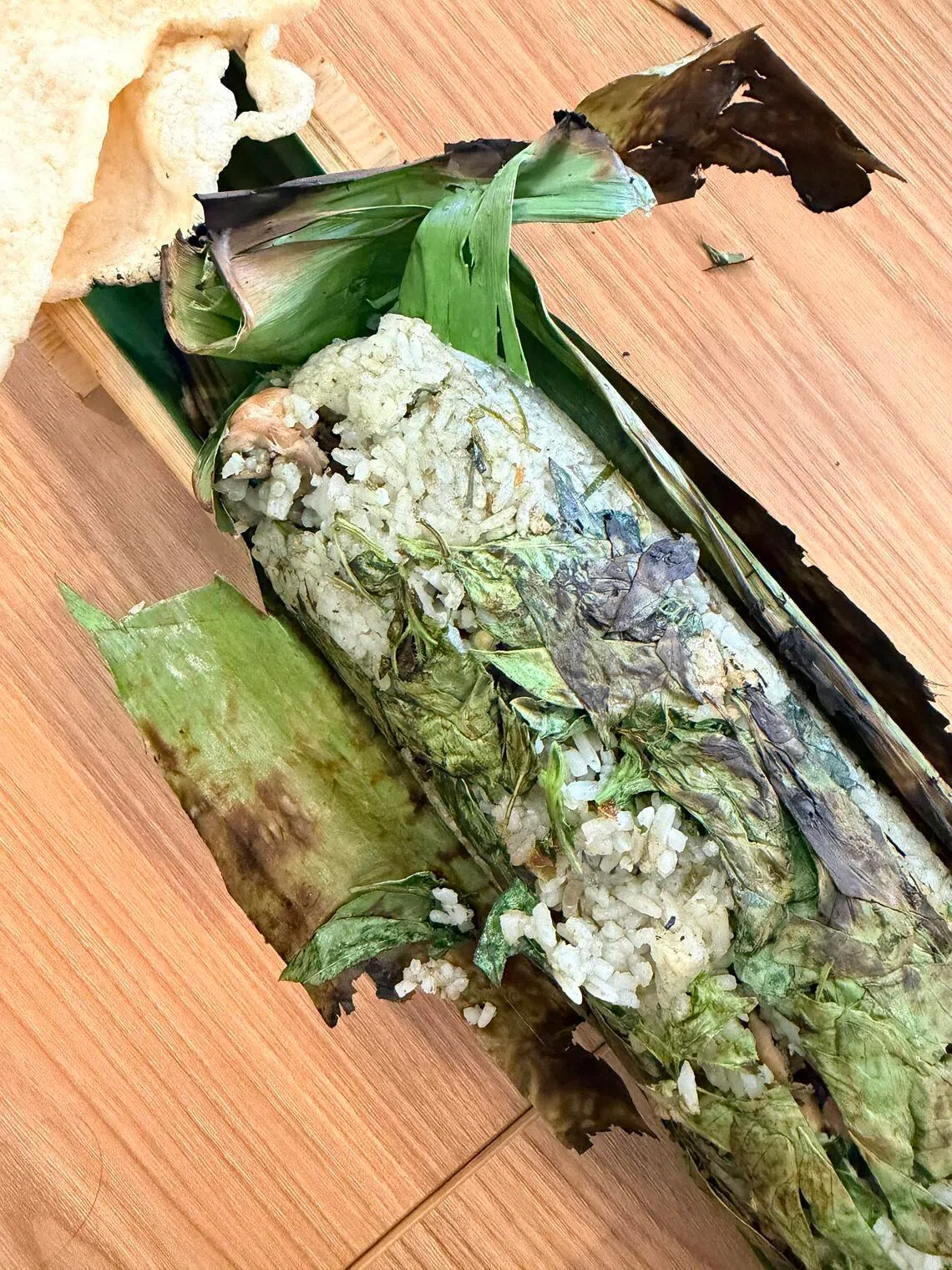 Grilled rice with baby squid at Noe Noesantara (@noe.santara.id on Instagram), wrapped in banana leaves and cooked in a bamboo tube, does not look like much – but my family agrees it is the most memorable item on the table. The rice is laced with kemangi, or lemon basil leaves, which add a touch of zest, and studded with chilli and bits of chewy squid. We hoover this up despite saying we would try not to eat too much carbs.