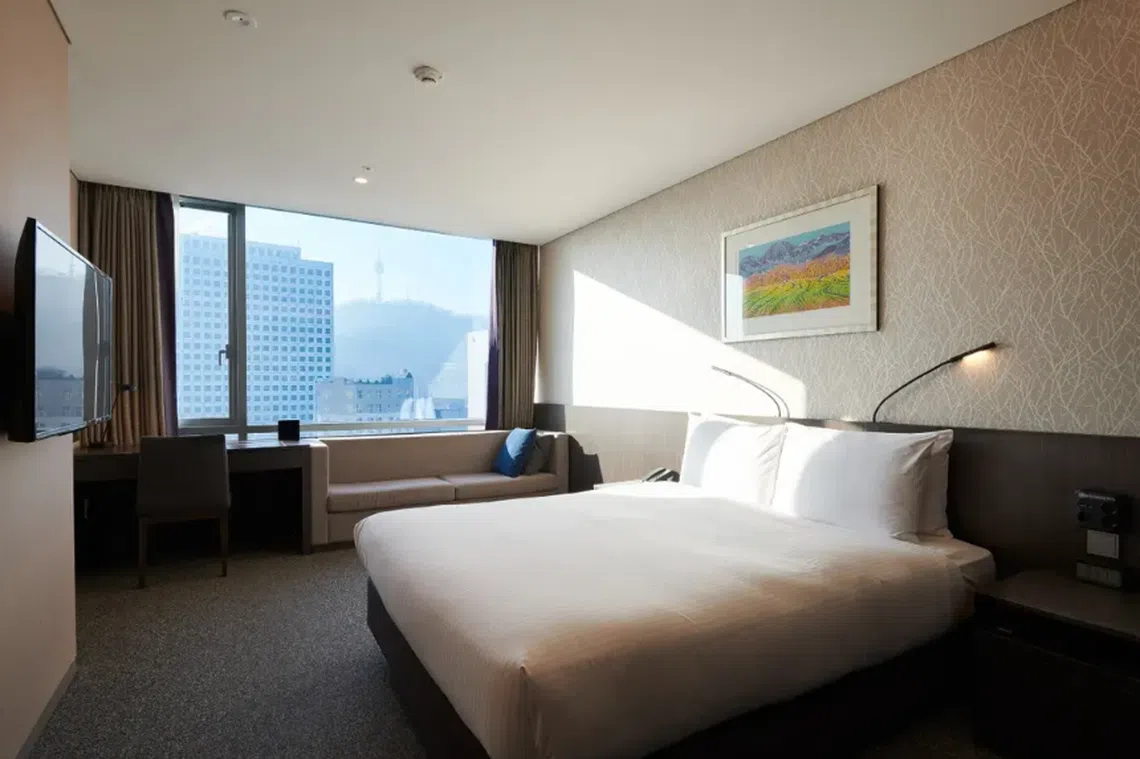 The hotel is also just a 5-minute drive from popular attractions like Namdaemun Market where traditional Korean street food awaits.
