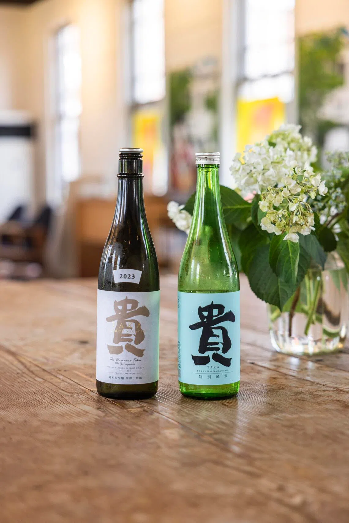 Nagayama Honke’s Domaine Taka junmai daiginjo (left) and junmai ginjo sake.