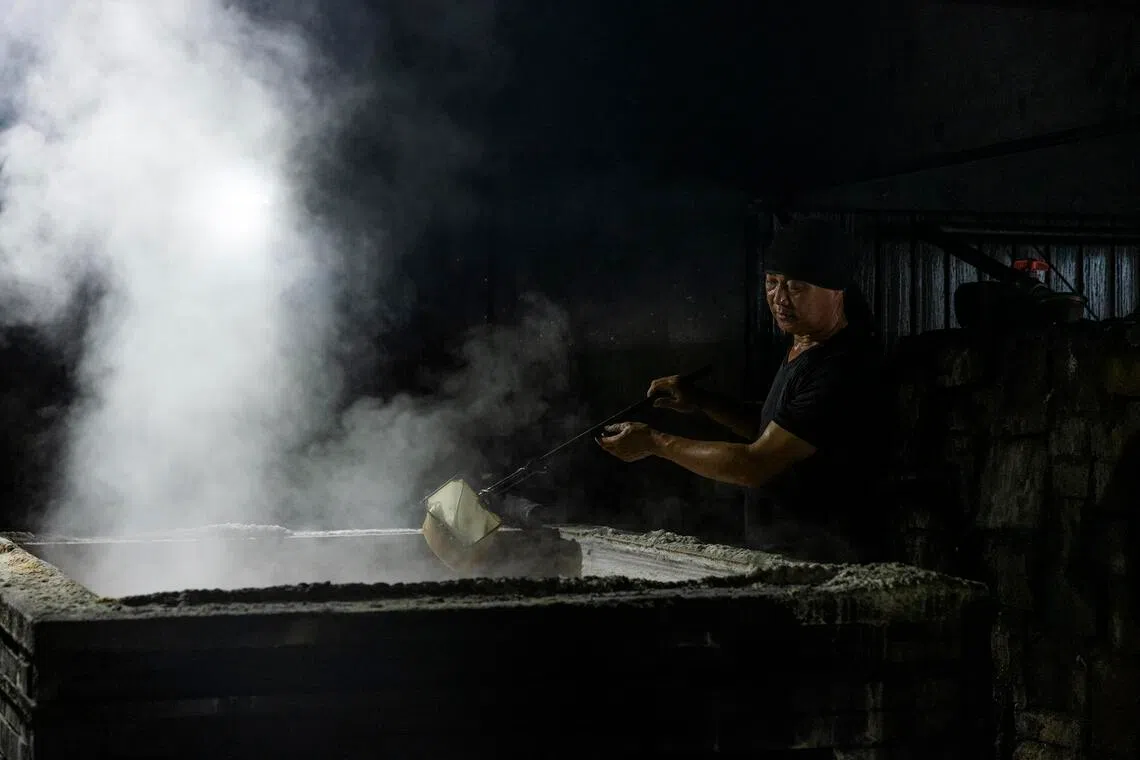 He and his staff produce about 300kg of salt a week in winter, and about 200kg in summer.