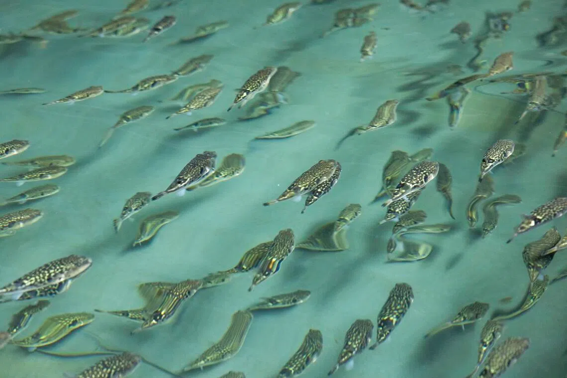Mr Jin Shiraishi's fugu farm, which he runs with his father, produces about 60,000 fugu a year.