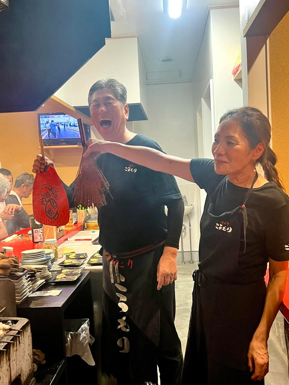 The energetic Mr and Mrs Ofuka of yakitori joint Koumori.