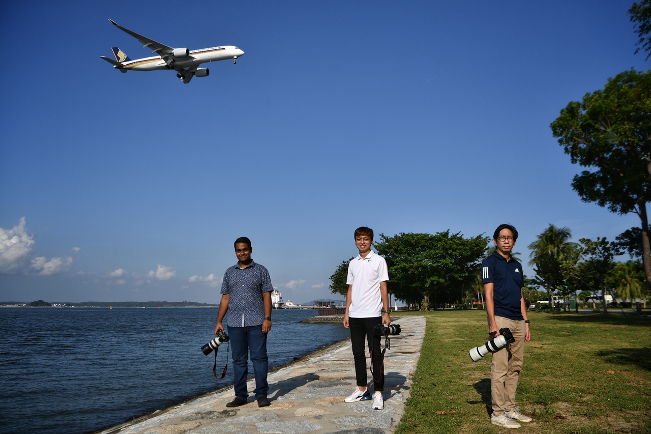 SINGAPORE - Under the palm trees and blue skies at Changi Beach Park, a group of people, armed with long camera lenses, gather and wait.