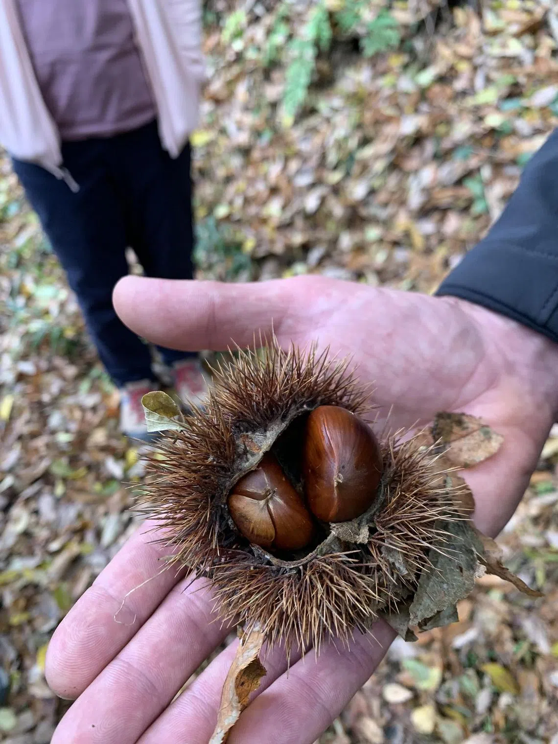 Every trek is a culinary quest and walkers may also spy chestnuts (pictured), wild strawberries, plums and ginkgo, depending on the season.