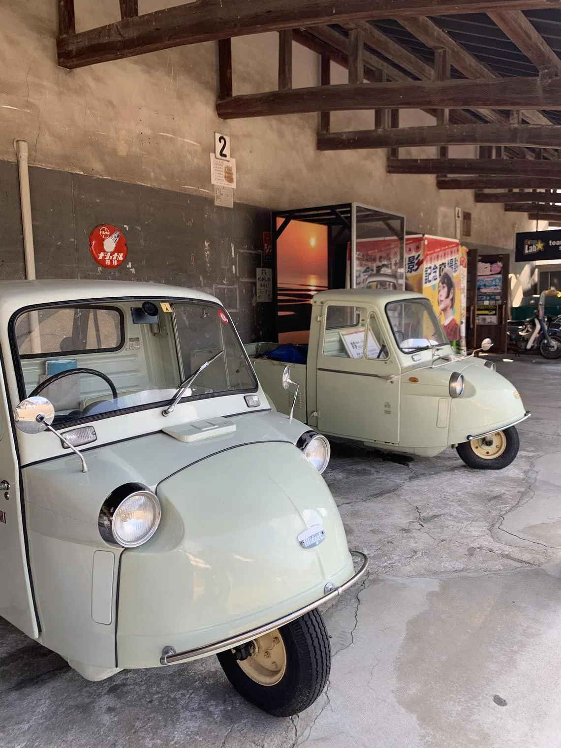 Showa Town in Bungotakada city invites travellers to step back in time to the late 1950s and early 1960s. On display are Daihatsu Midget mini-trucks.