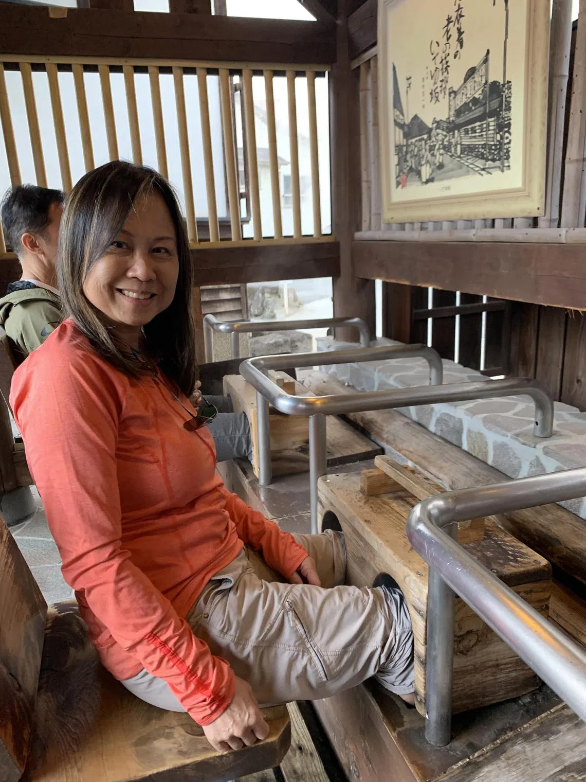 Another time, led by Australia-born Japanese-speaking guide Jonathan Finger, some of us try a tiny, traditional streetside footbath fashioned from wood. Roll up your trousers, insert your feet into two steaming “buckets” and enjoy the feeling of walking out on clouds.