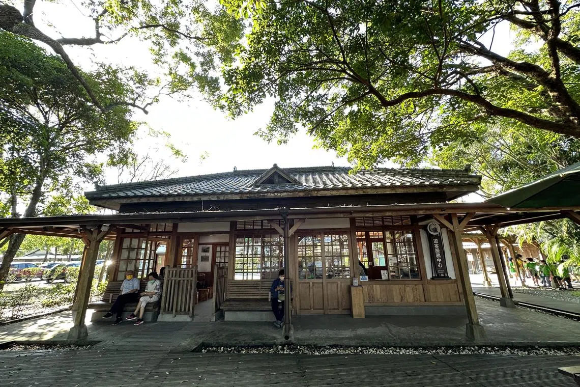 A little railway station built from fragrant cypress wood at Luodong Forestry Culture Park.