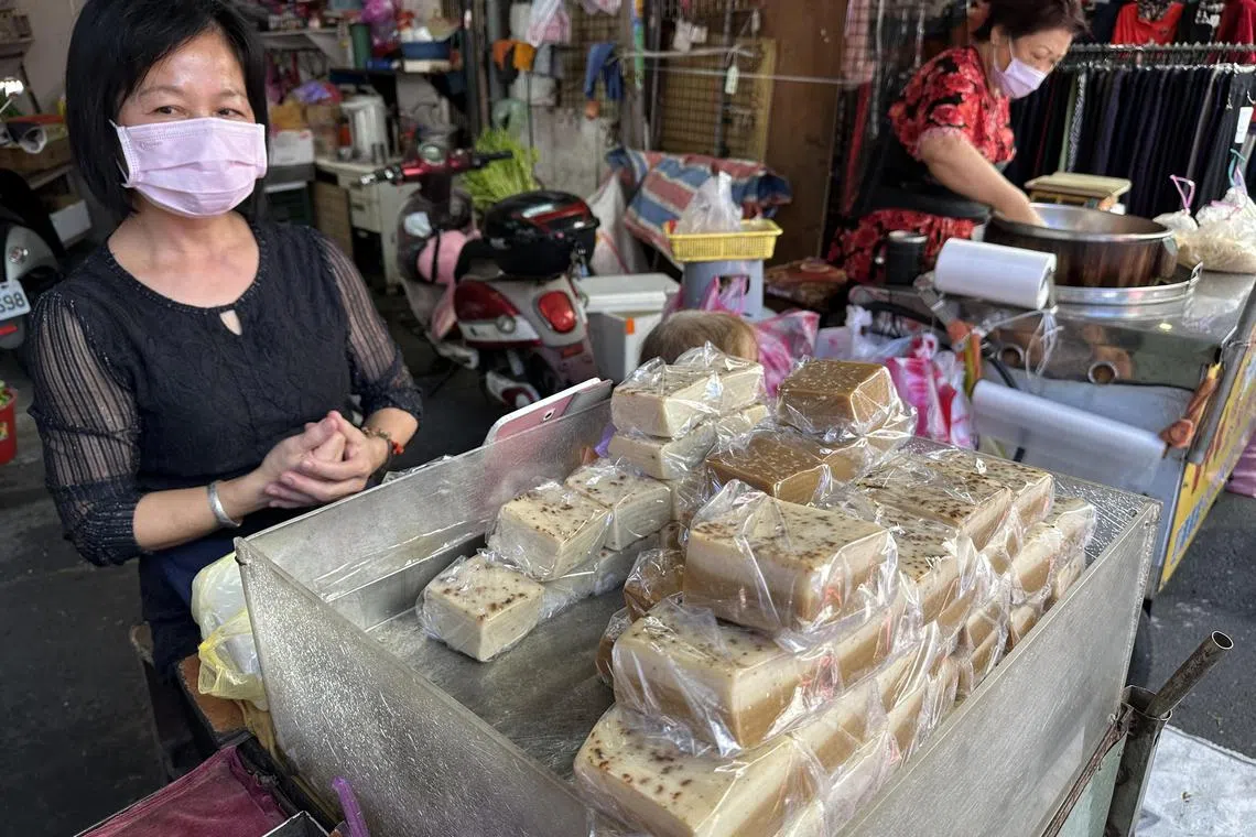 Next to this stall is another selling the Taiwanese version of kueh lapis – a nine-layer steamed cake flavoured with savoury onions on top and sweet brown sugar below.