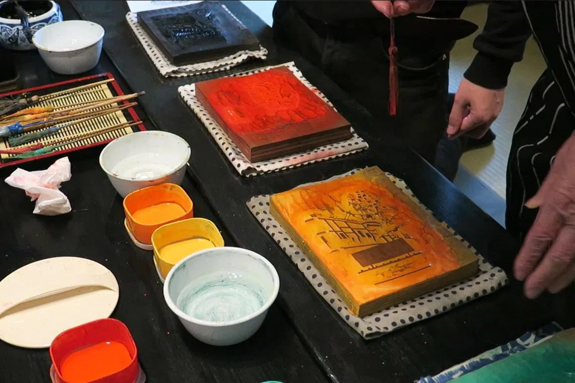 Try your hand at creating a postcard-size painting by making prints from woodblocks at the Kamigata Ukiyo-e Museum under the supervision of museum director Seiko Takano.