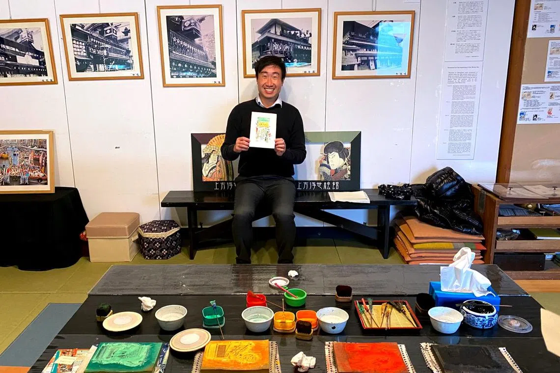 The ukiyo-e woodblock printing experience at the Kamigata Ukiyo-e Museum in the Dotonbori district of Osaka.